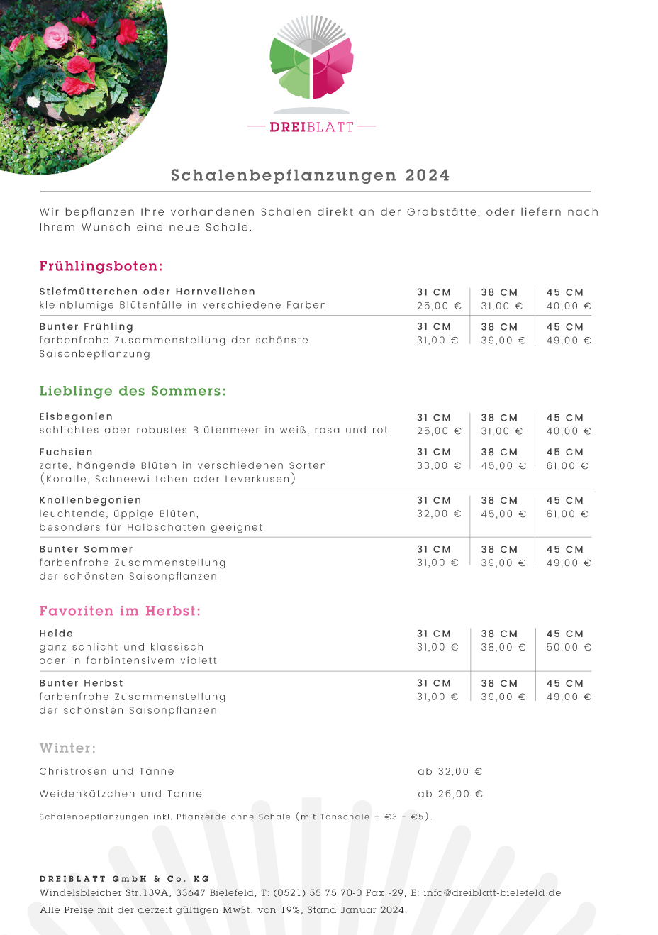 Laden Sie hier die JPG. runter von unsere aktuellen (2024) Preisen für Grabpflege, Bepflanzung und Schalenbepflanzungen.
